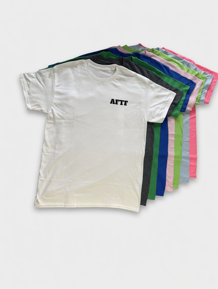 100% black cotton tee with front and back white AFTF lettering